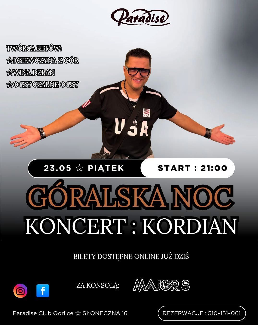 Koncert Kordian Paradise Club Gorlice 16+