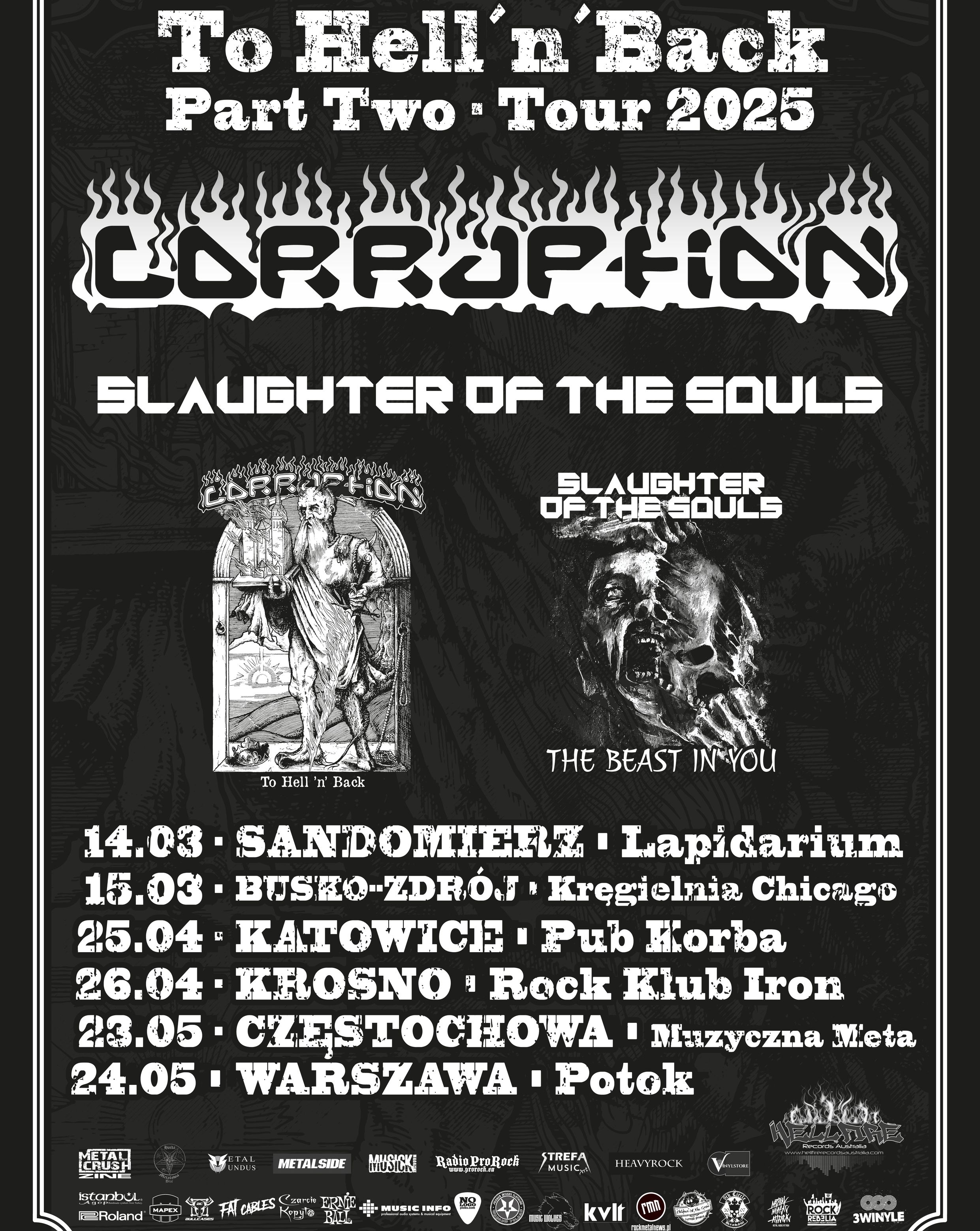 CORRUPTION zaprasza na drugą część trasy koncertowej pod nazwą "To Hell'n'Back"!!! Zagramy dla Was kolejnych kilka koncertów z naszymi przyjaciółmi ze Slaughter of the Souls.