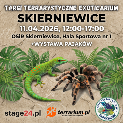 Zapraszamy na niezapomnianą podróż do świata egzotycznych zwierząt! Już 11 kwietnia Skierniewice zamienią się w stolicę egzotyki, a to za sprawą Targów Terrarystycznych Exoticarium – największego i najbardziej oczekiwanego wydarzenia dla wszystkich miłośników terrarystyki, botaniki i akwarystyki w Polsce.