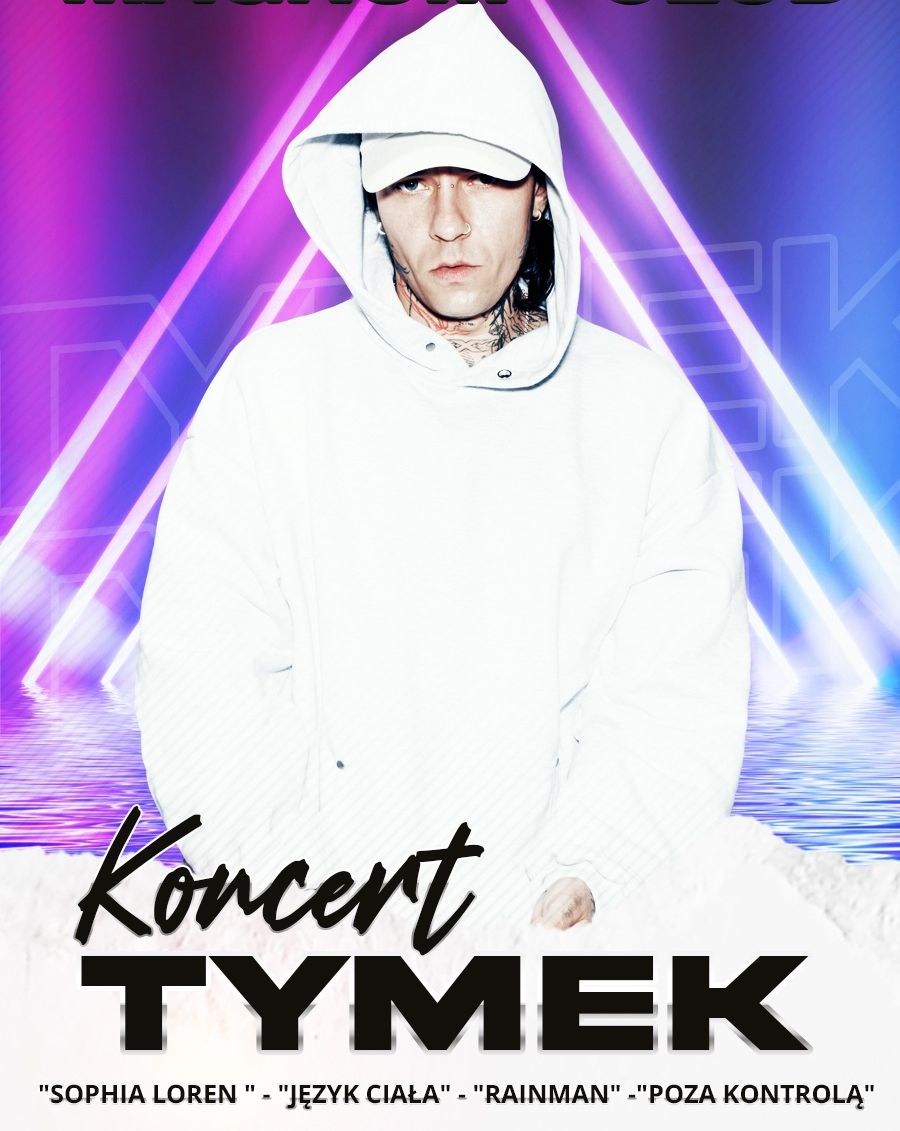 Zapraszamy na kolejny koncert w MAGNUM ! Tego wieczoru na scenie wystąpi TYMEK! Usłyszycie takie hity jak: "Sophia Loren", "Język Ciała", "Rainman", "Poza kontrolą", "Anioły i Demony" i wiele innych!
